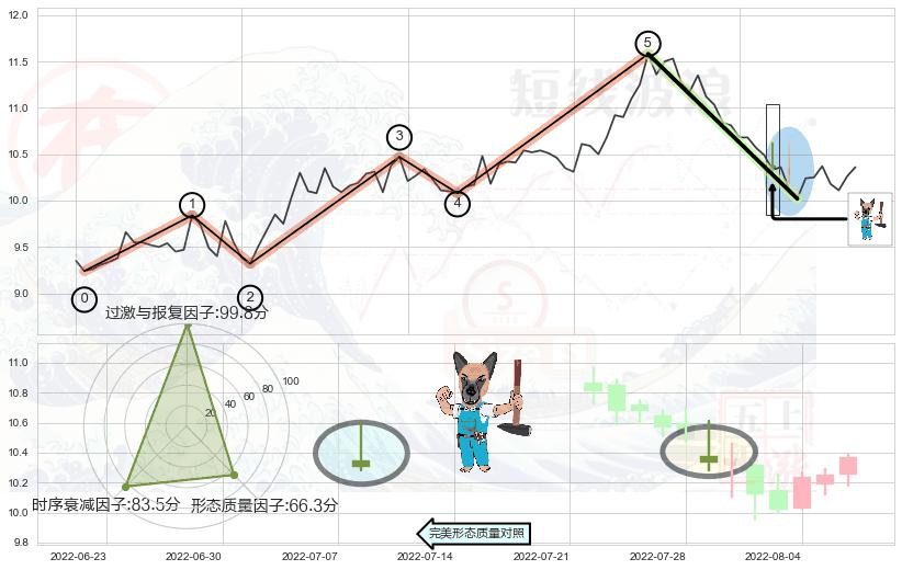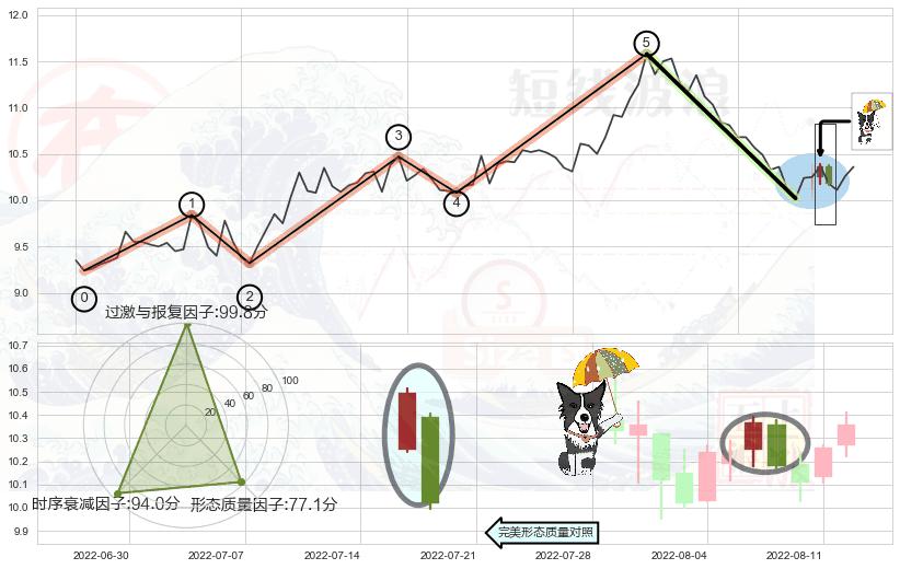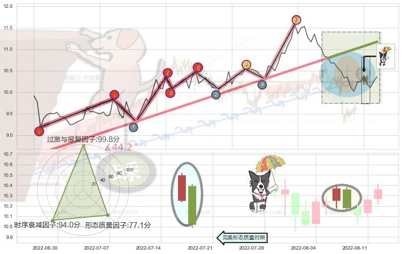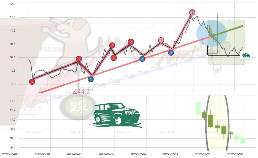 ➢ 2022-03-15-2022-07-22上升趋势存在反转[风险],其原上升趋势的支撑位(11.17)已破位[强阻力信号],原上升趋势角度: 44.2˚