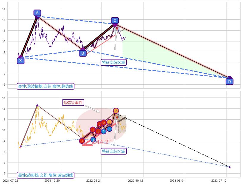 ➢ 趋势线属【短级别信号事件】谐波蝴蝶属【长级别信号事件】长短周期组合信号事件, 短长事件长度比34.92%