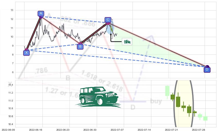 ➢ 未完成【蝴蝶】形态起点X: 2021-07-30, 已到达C点: 2022-07-08, 预测最终D点: 2023-07-28, 共495交易日
