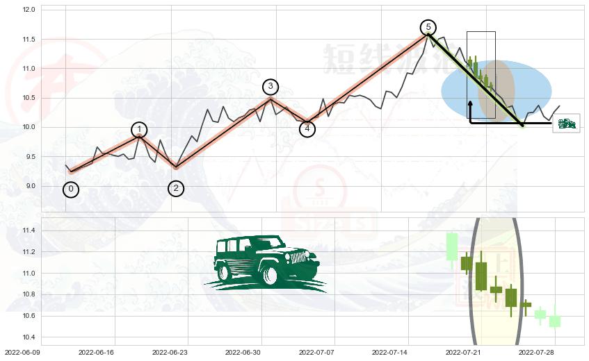 ➣ 波浪理论:猜想击穿破位c点后继续下跌 → 下跌 → 风险信号 → 小趋势跟踪