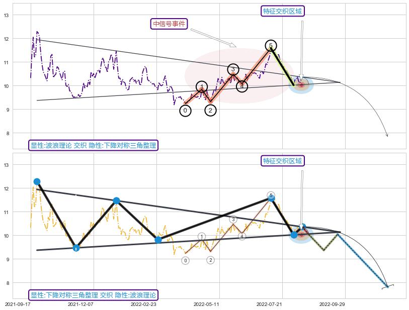 ➢ 【未确认突破,预测即将形成突破】下降【对称】三角形整理起点:2021-09-28, 预测突破点:2022-08-19,形态共217交易日