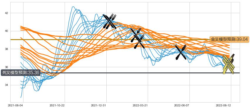 ➣ 40小时均线于(2022-05-20: 37.63)形成【死叉】基于【死叉历史模型】预测死叉后最低波谷价格: 35.36, 死叉后最低价格35.16,已经下跌超出预测最低波谷价格, 预期反弹