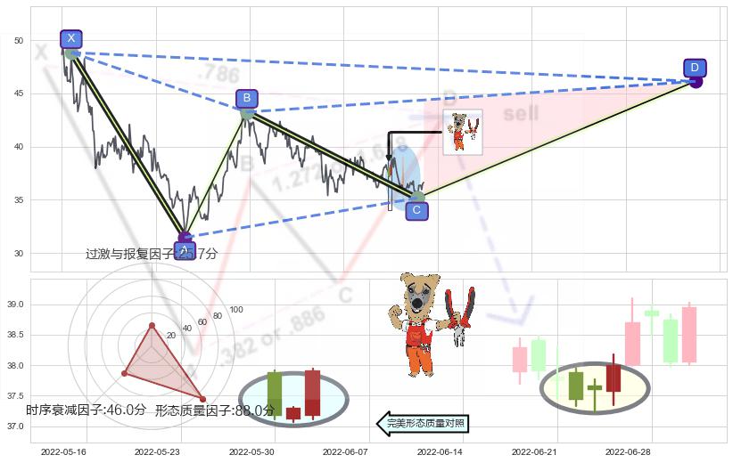 ➢ 【卖1】: 激进型 卖点→(2022-07-07: 36.71 )形成突破下降【对称】三角形整理【整理】形态