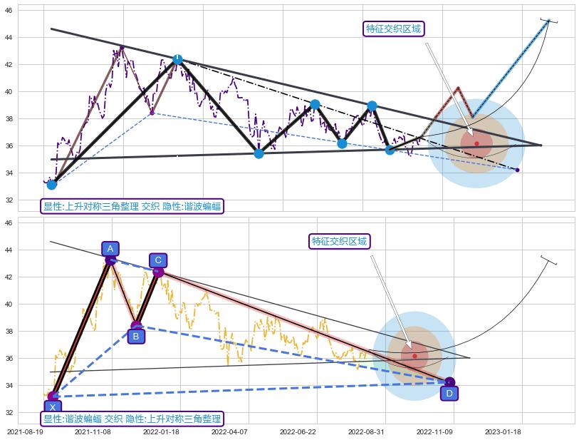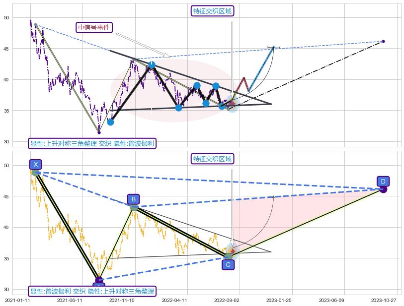 ➢ 上升对称三角整理与谐波蝙蝠信号事件周期长度级别相同,同周期信号事件