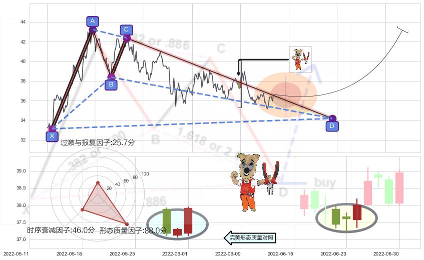 ➢ 上涨镊子线(U形磁铁) 🔜 谐波蝙蝠临近d拐点上涨支撑 综合量化分数:51.51 【中性】
