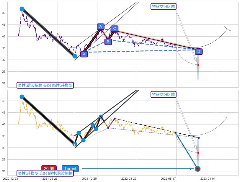 ➢ 未完成【蝙蝠】形态起点X: 2021-08-30, 已到达C点: 2021-12-24, 预测最终D点: 2022-11-04, 共284交易日