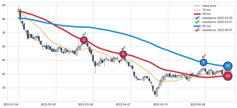 ➣ 55小时均线于(2022-06-22: 39.58)形成【金叉】基于【金叉历史模型】预测金叉后最高波峰价格: 49.41, 金叉后最高价格54.60,已经上涨超出预测最高波峰价格, 预期回调