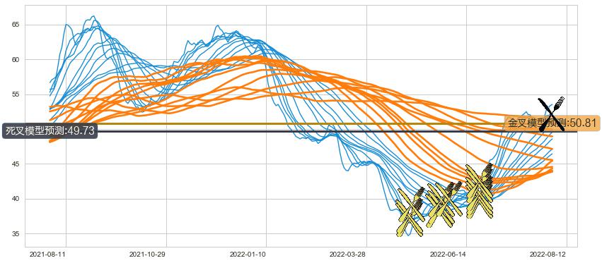 ➢ 10小时均线于(2022-08-11: 52.04)形成【死叉】基于【死叉历史模型】预测死叉后最低波谷价格: 49.73, 死叉后最低价格52.04,已经下跌超出预测最低波谷价格, 预期反弹