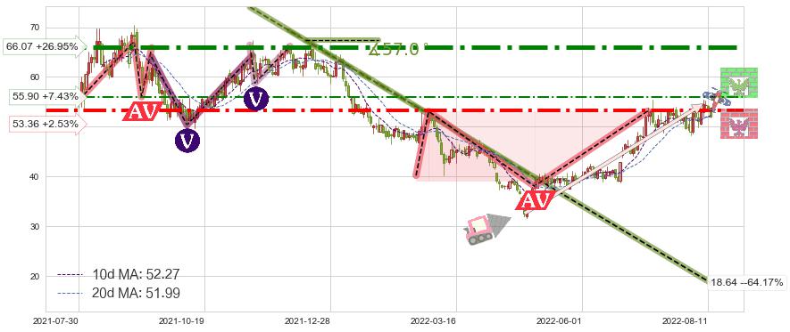 ♘ 阻力价格位55.90,可信任强度47.94%,距离最后交易2022-08-12形成的收盘价格52.04相差 +7.43%