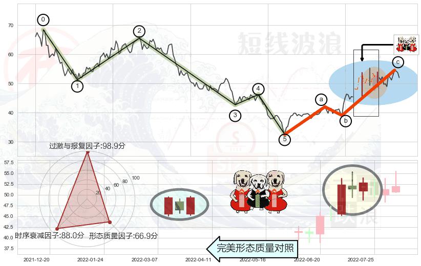 ➢ 阴包阳形态 🔜 波浪理论上涨浪:浪5回调拐点 综合量化分数:47.04 【中性】