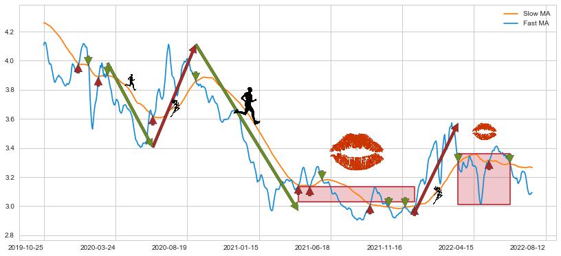 2022-03-14至2022-06-30 慢线与快线多次接触,存在上下穿越,有缠绕