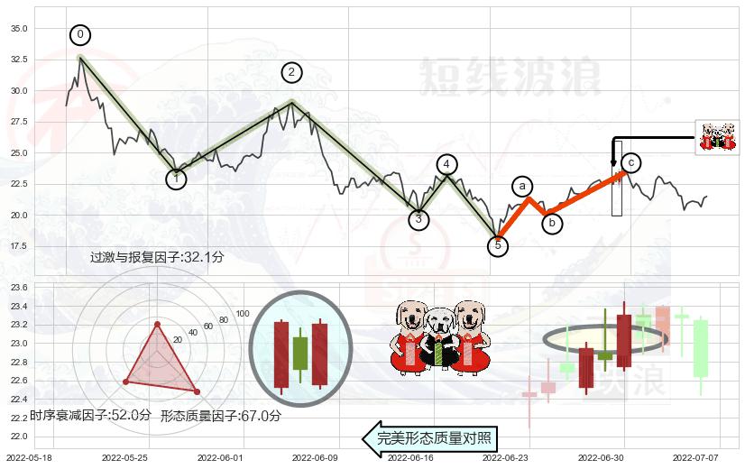 ➢ 🕰 价格走势在2022-07-20至2022-07-22期间形成黄昏之星(夜星),残存影响值:-6.60