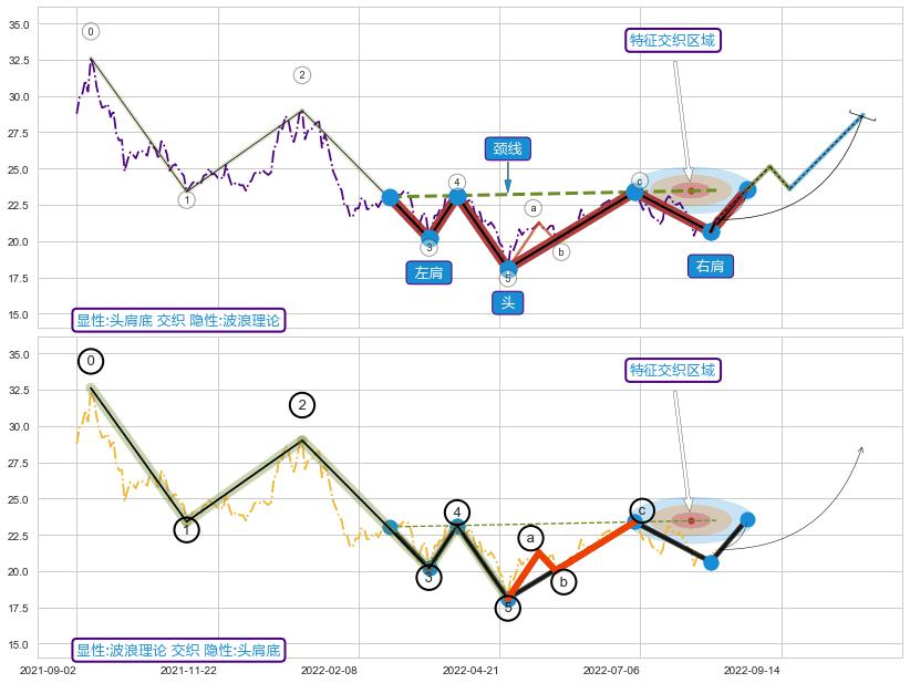 ➢ 头肩底与波浪理论信号事件周期长度级别相同,同周期信号事件