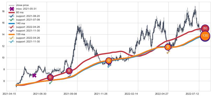 ➣ 13小时均线于(2022-08-08: 13.92)形成【金叉】基于【金叉历史模型】预测金叉后最高波峰价格: 15.13, 金叉后最高价格14.94,尚未达到预测最高波峰价格, 预期继续上涨