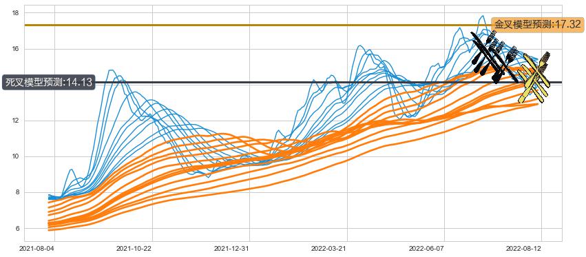 ➢ 80小时均线于(2022-08-11: 14.70)形成【金叉】基于【金叉历史模型】预测金叉后最高波峰价格: 18.46, 金叉后最高价格14.94,尚未达到预测最高波峰价格, 预期继续上涨
