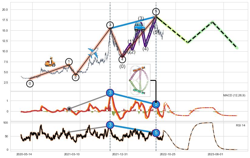 ➣ 波浪理论:猜想止涨 → 下跌 →【拐点】浪5已完成 → 大趋势均值回复