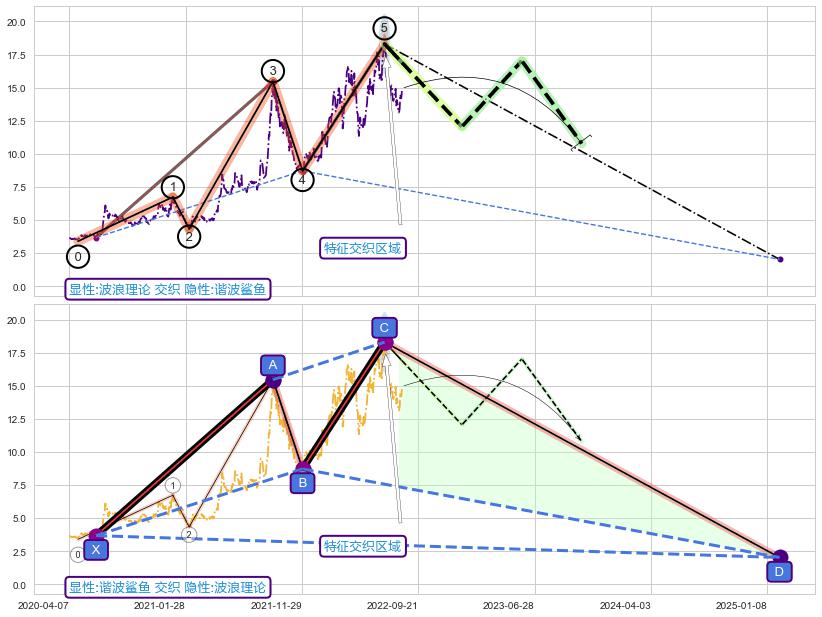 ➢ 波浪理论与谐波鲨鱼信号事件周期长度级别相同,同周期信号事件