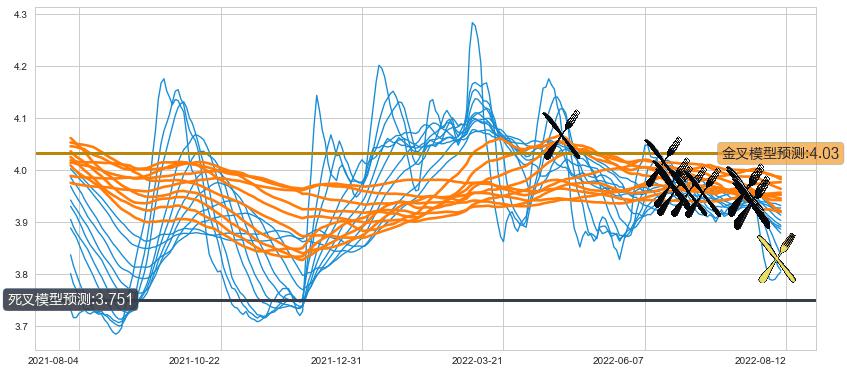 ➣ 70小时均线于(2022-04-20: 4.07)形成【死叉】基于【死叉历史模型】预测死叉后最低波谷价格: 3.822, 死叉后最低价格3.770,已经下跌超出预测最低波谷价格, 预期反弹