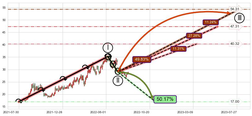 ➢ AI预测: 假定反转启动后, 第❷目标位置(2022-11-29, 31.41)