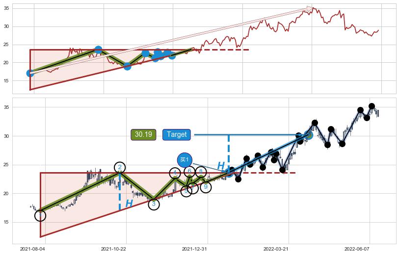 ➣ AI预测: 假定反转启动后, 第❸目标位置(2022-12-22, 35.19)