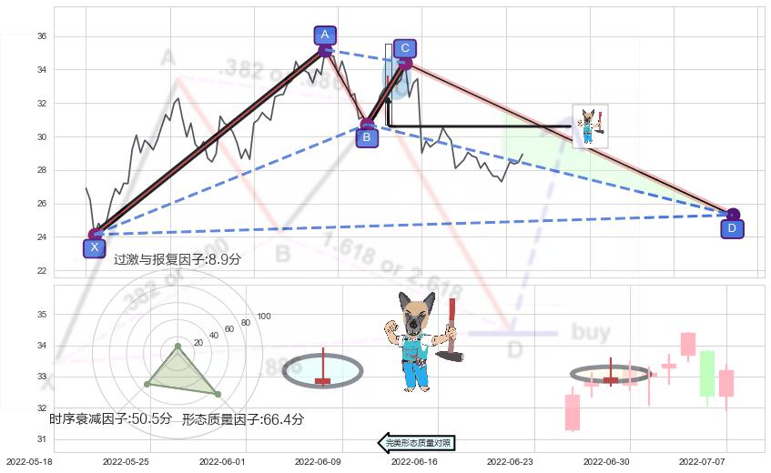 ➣ 未完成【蝙蝠】形态起点X: 2022-03-15, 已到达C点: 2022-07-05, 预测最终D点: 2022-10-21, 共148交易日