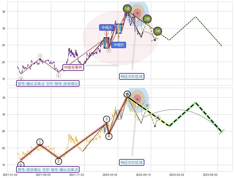 ➣ 缠论买卖点:猜想2卖持续蓄力下跌至3卖 → 下跌 → 风险信号 → 小趋势跟踪
