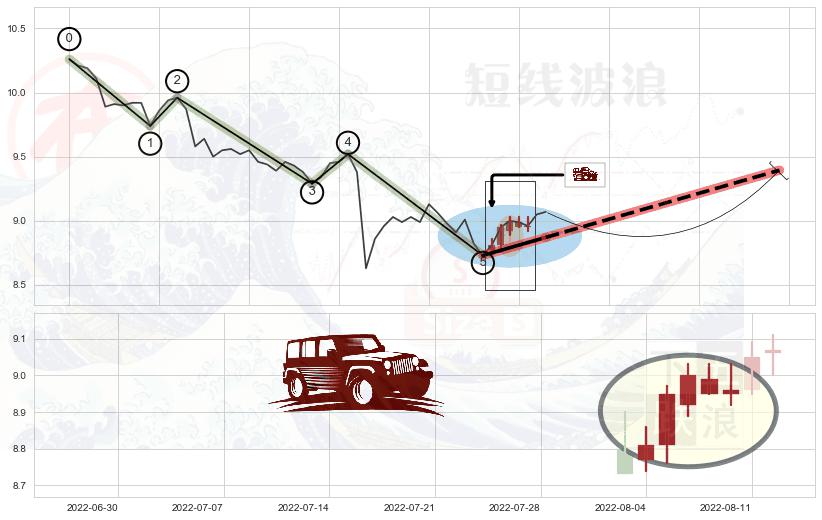 ➢ 🕰 价格走势在2022-08-04至2022-08-10期间形成低档五阳线,残存影响值:5.88
