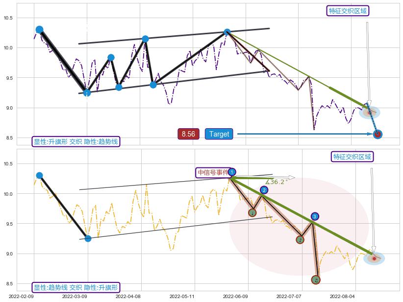 ➣ 锤头线(锤子线) + 升旗形临近target支撑拐点上涨信号叠加后【目标达成率】中等,【看多】信号叠加【存续影响中等】
