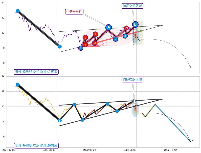 ➢ 趋势线属【中级别信号事件】升楔型属【长级别信号事件】中长周期组合信号事件,中长事件长度比44.90%