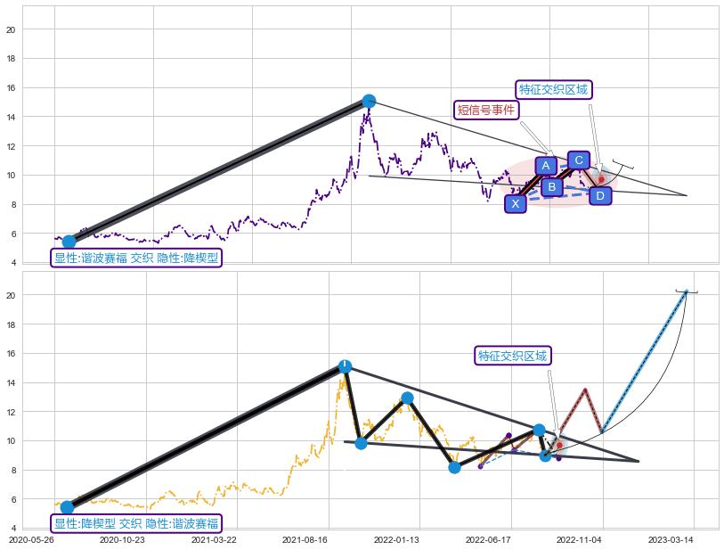 ➢ 谐波赛福属【短级别信号事件】降楔型属【长级别信号事件】长短周期组合信号事件, 短长事件长度比14.23%