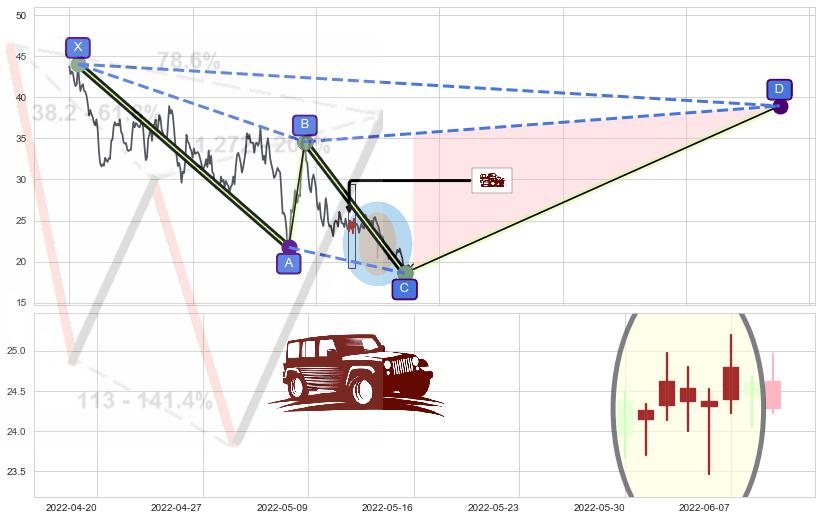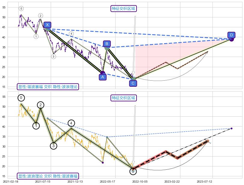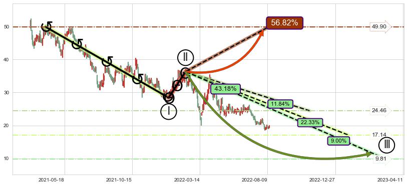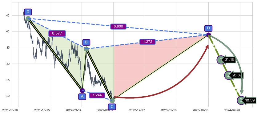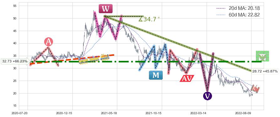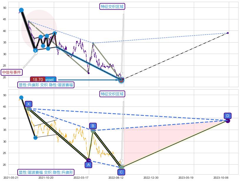 ➣ D点拟合预测价格38.95,距离最后交易收盘价格19.69相差 +97.84%