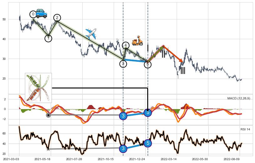 ➣ 【RSI】缠论走势出现【常规背离 & 反转信号】背离程度38.27%,背离夹角角度34.8˚,背离程度较大
