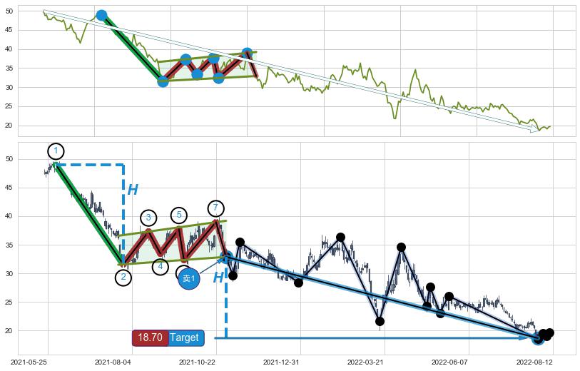 ➣ 最小中继整理跌幅→𝐇: 17.36 (𝐇旗杆的长度:旗杆起点→顶点)
