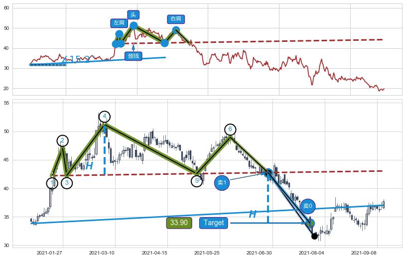 ➣ 【已确认突破】头肩顶 起点:2021-01-04,突破点:2021-06-28,形态共116交易日