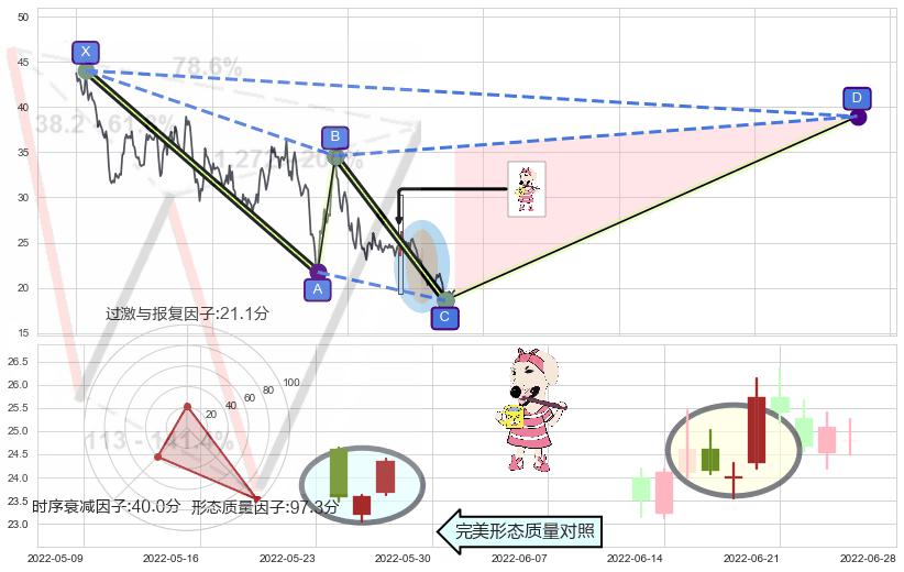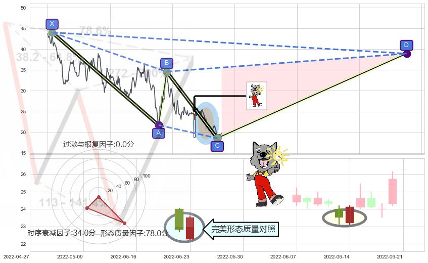 ➢ 曙光初现形态 🔜 谐波赛福下沉击穿c上涨拐点 综合量化分数:54.65 【偏多】