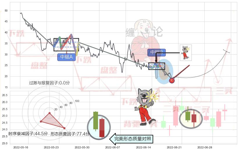 ➣ 【中枢B】:2022-06-13-2022-07-04,中枢由5笔构成,共16交易日, ZG=25.43, ZD=24.50