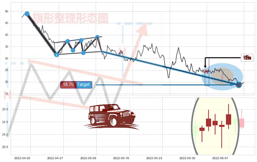 ➣ 升旗形:下跌目标target已达成:猜想强支撑位临近,预期反弹上涨(均值回复)