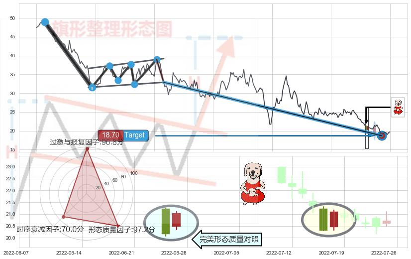 ➢ 曙光初现形态 🔜 升旗形target支撑拐点上涨 综合量化分数:53.08 【中性】
