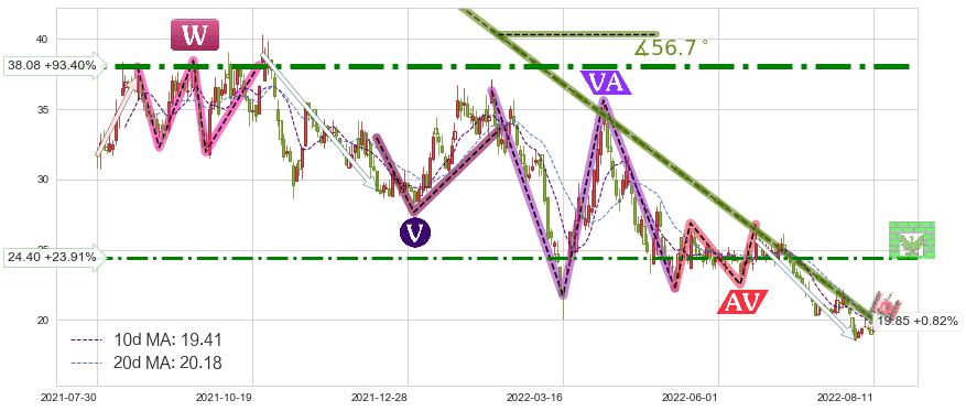 ♘ 阻力价格位24.40,可信任强度62.13%,距离最后交易2022-08-12形成的收盘价格19.69相差 +23.91%