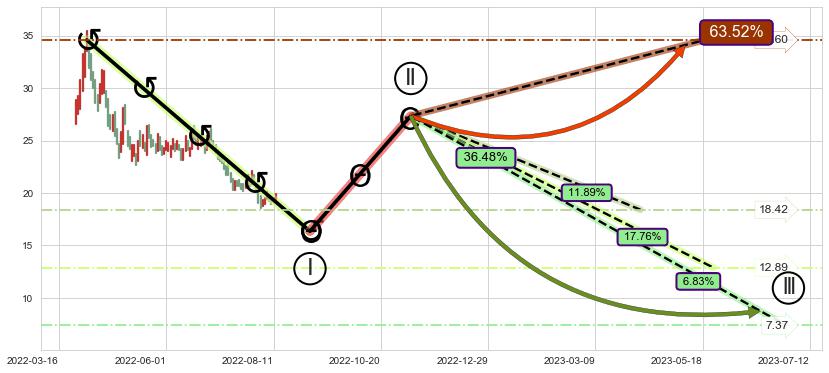 ➣ 循环浪继续向下【平均值】位置(2023-05-25, 12.89),匹配聚类样本比例48.69%, 可能性概率17.76%