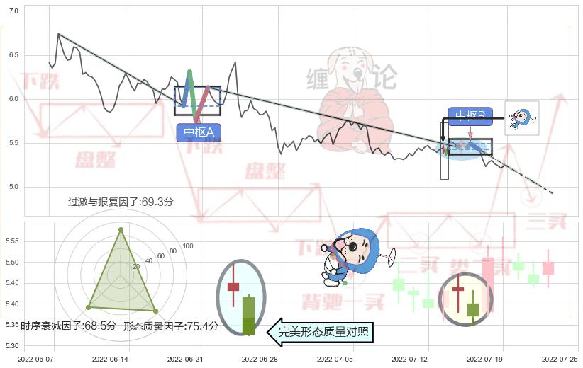 ➢ 【中枢B】:2022-07-21-2022-08-01,中枢由5笔构成,共8交易日, ZG=5.49, ZD=5.45