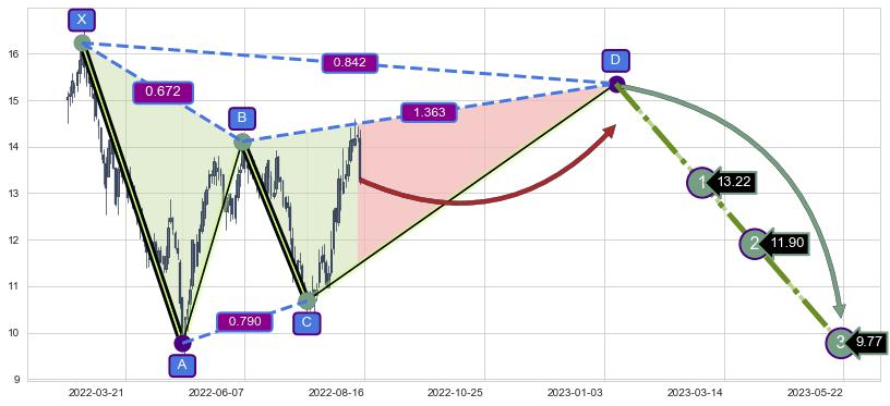 ➣ 未完成【伽利】形态起点X: 2022-02-23, 已到达C点: 2022-07-13, 预测最终D点: 2023-01-10, 共223交易日