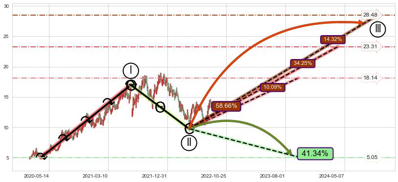 ➣ AI预测: 假定反转启动后, 第❸目标位置(2023-05-22, 9.77)