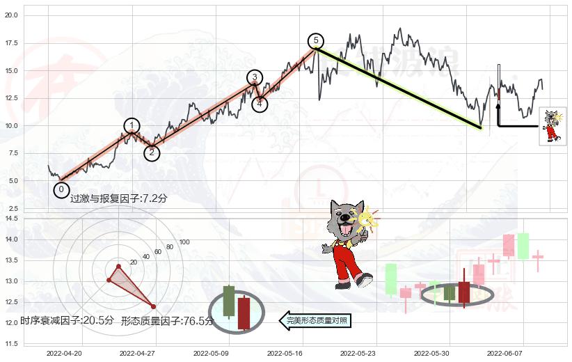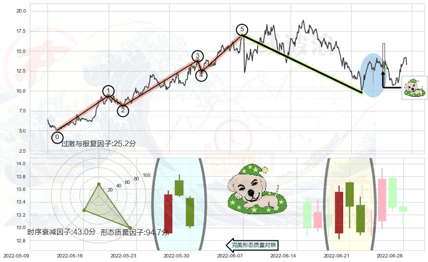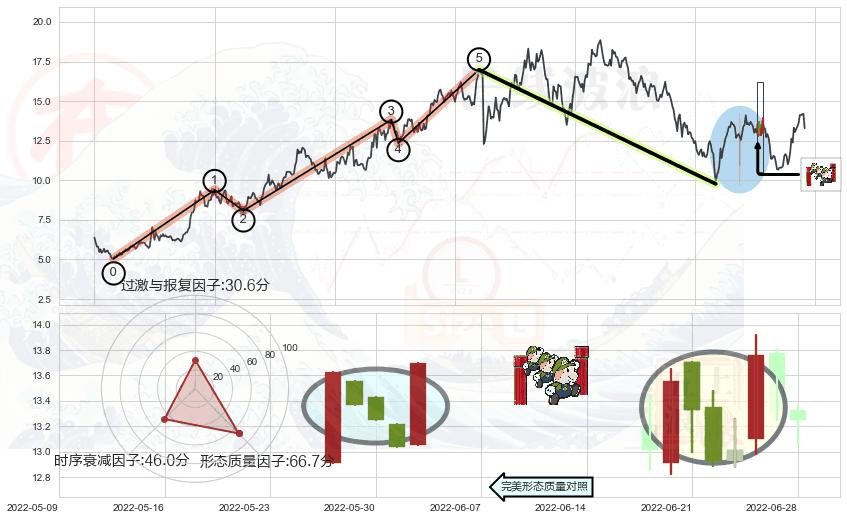 ➢ 🕰 价格走势在2022-06-20至2022-06-24期间形成上升三部曲(升势三鸦),残存影响值:2.23