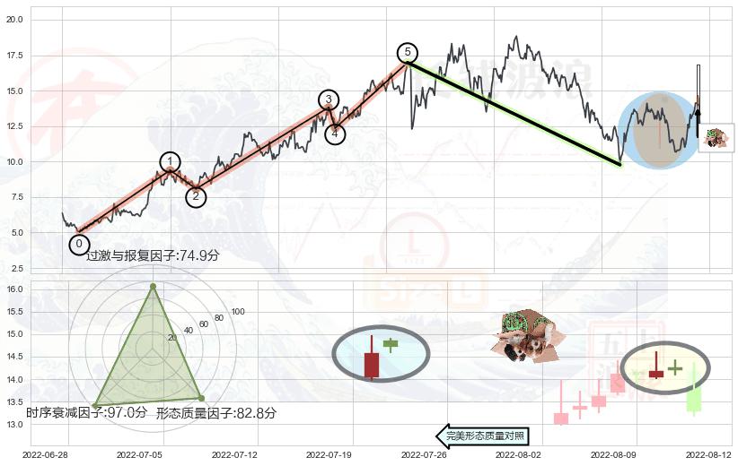 从2022-04-26至2022-08-12,共包含75个交易日,阶段股价上涨34.69%,阶段股价变动位移路程比: 1 : 5