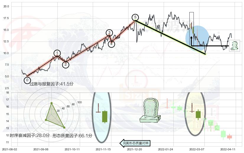 从2021-12-01至2022-04-26,共包含97个交易日,阶段股价下跌-62.16%,阶段股价变动位移路程比: 1 : 3