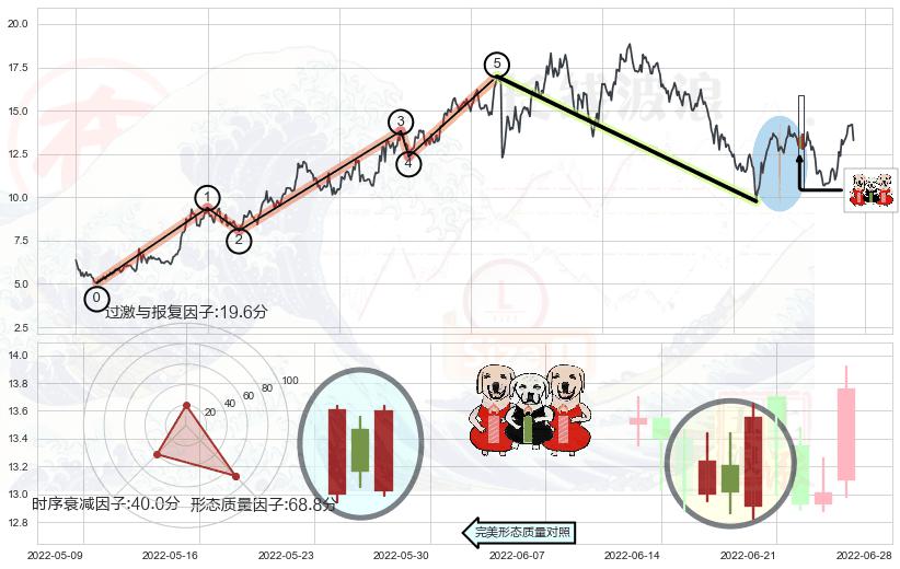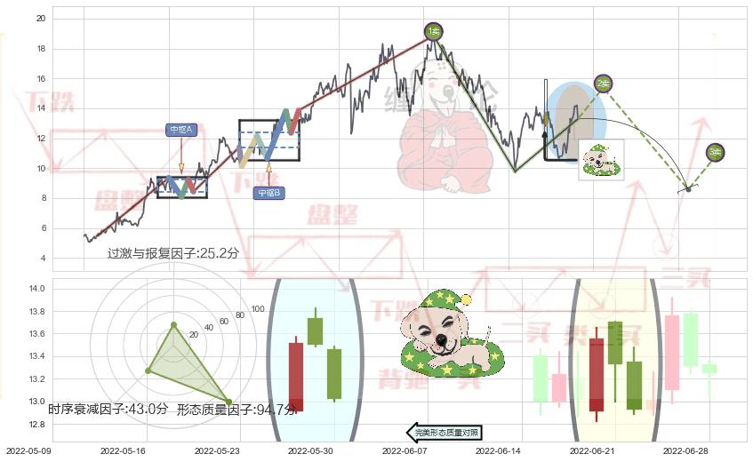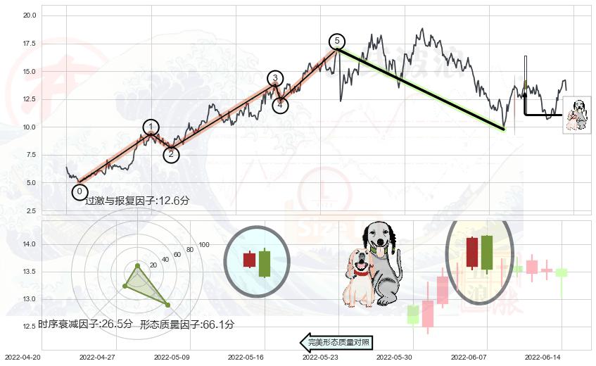 ➢ 🕰 价格走势在2022-06-16至2022-06-20期间形成两红夹一黑,残存影响值:2.32
