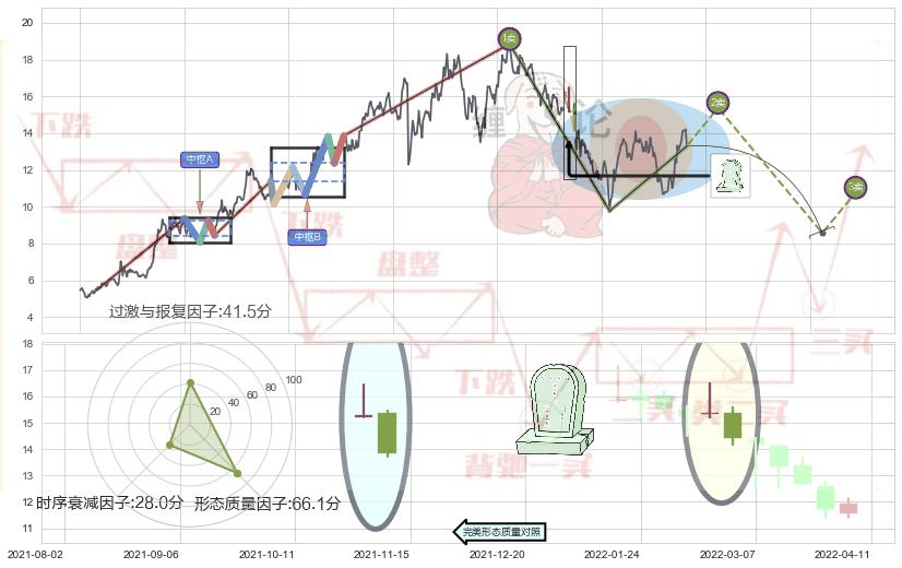 ➢ 缠论买卖点2卖回调下跌至3卖 🔜 波浪理论击穿破位C点继续下跌 综合量化分数:46.95 【中性】