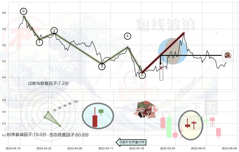 ➢ 🕰 价格走势在2022-06-13至2022-06-15期间形成早晨之星(黎明之星),残存影响值:4.53