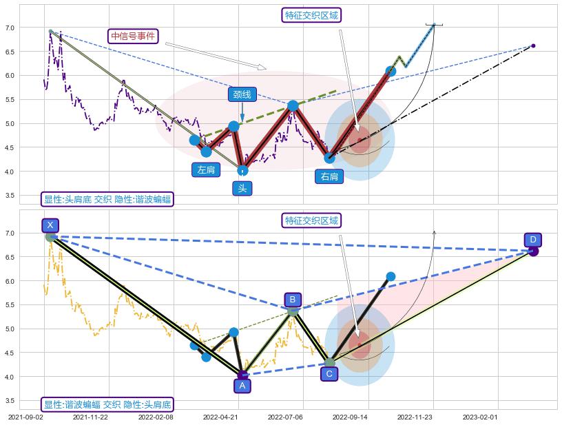 ➢ 头肩底属【中级别信号事件】谐波蝙蝠属【长级别信号事件】中长周期组合信号事件,中长事件长度比63.68%